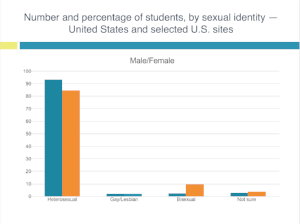 The US Centers for Disease Control (CDC) released a new study this past Friday,  Sexual Identity, Sex of Sexual Contacts, and Health-Related Behaviors Among Students in Grades 9-12. The study is based on data from the 2015 National Youth Risk Behavior Survey (YRBS), an ongoing project to monitor six categories of priority health-related behaviors among youth and young adults: 1) behaviors that contribute to unintentional injuries and violence; 2) tobacco use; 3) alcohol and other drug use; 4) sexual behaviors related to unintended pregnancy and sexually transmitted infections, including human immunodeficiency virus infection; 5) unhealthy dietary behaviors; and 6) physical inactivity.