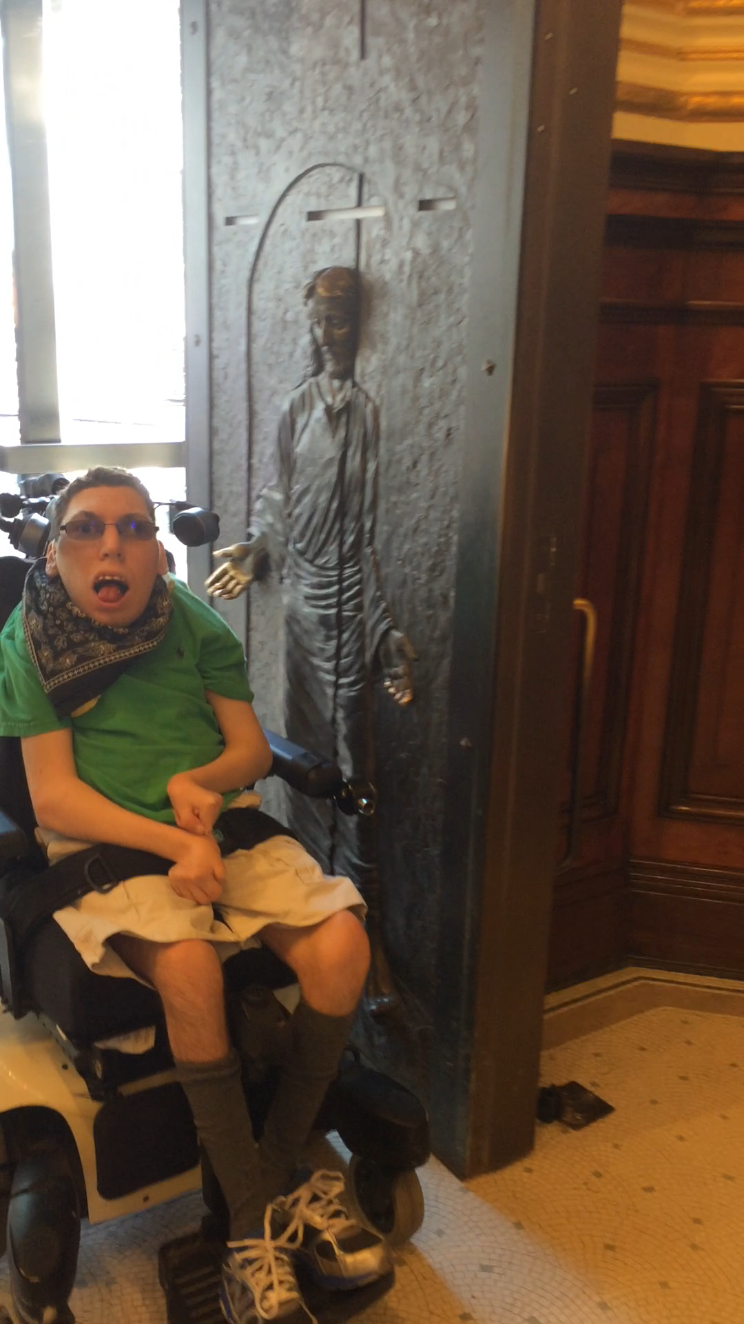 When we opened the massive bronze Holy Door at the Notre-Dame Basilica, Ben eagerly drove his wheelchair over the threshold. At that moment, time stood still. The world inside the Chapel of the Sacred Heart was calm and peaceful in contrast to the frantic, noisy, and chaotic world outside. There were no thoughts of seizures or anxiety or pain. Only feelings of relief and comfort.
