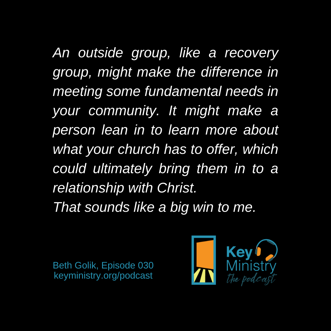 An outside group, like a recovery group, might make a difference in meeting some fundamental needs in your community. It might make a person lean in to learn more about what your church has to offer, which could ultimately bring them into a relationship with Christ. That sounds like a big win to me.