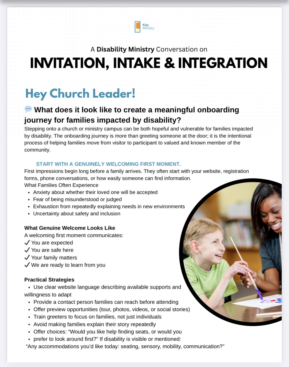 Resources Search Search Search Clear Topic Topic TopicNoneDisability MinistryKids MinistryPlanningADHDAdult MinistryAutismMental HealthOutreach MinistryStudent MinistryLanguage Focus Focus FocusNoneTrauma MinistryMental Health MinistryFamily MinistryDisability MinistryChurch Ministry Media Type Media Type Media TypeNoneVideoDownloadable PDFBook Clear All About BehaviorsInvitation, Intake, IntegrationSample Intake QuestionsTen Tips for Supporting Neurodiverse Teens in Your Youth MinistrySibling SupportSensory Room Resource SheetOutreach Ideas for Fall & WinterAccessible Events Planning WorksheetDisabilities of Aging: A Church-Wide ConversationWords Matter: The Language of Disability MinistryThere’s This Kid – AutismTech-Savvy Tools for Disability Ministry Load more